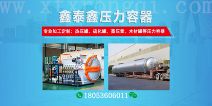 您好,歡迎來(lái)到山東鑫泰鑫智能裝備有限公司網(wǎng)站!我們?yōu)槟峁└鞣N規(guī)格的硫化罐、熱壓罐、蒸壓釜、木材罐等壓力容器設(shè)備及服務(wù)。